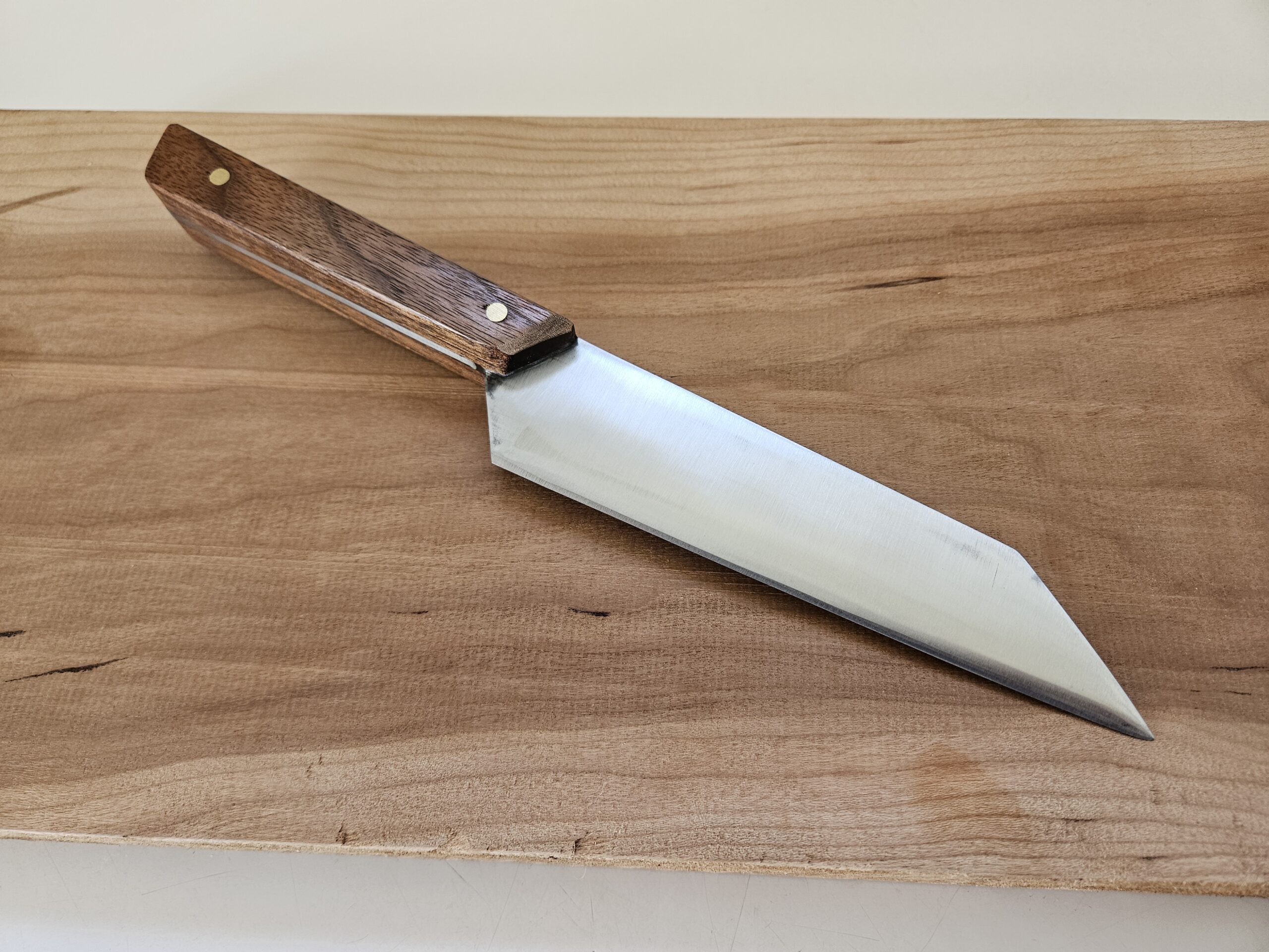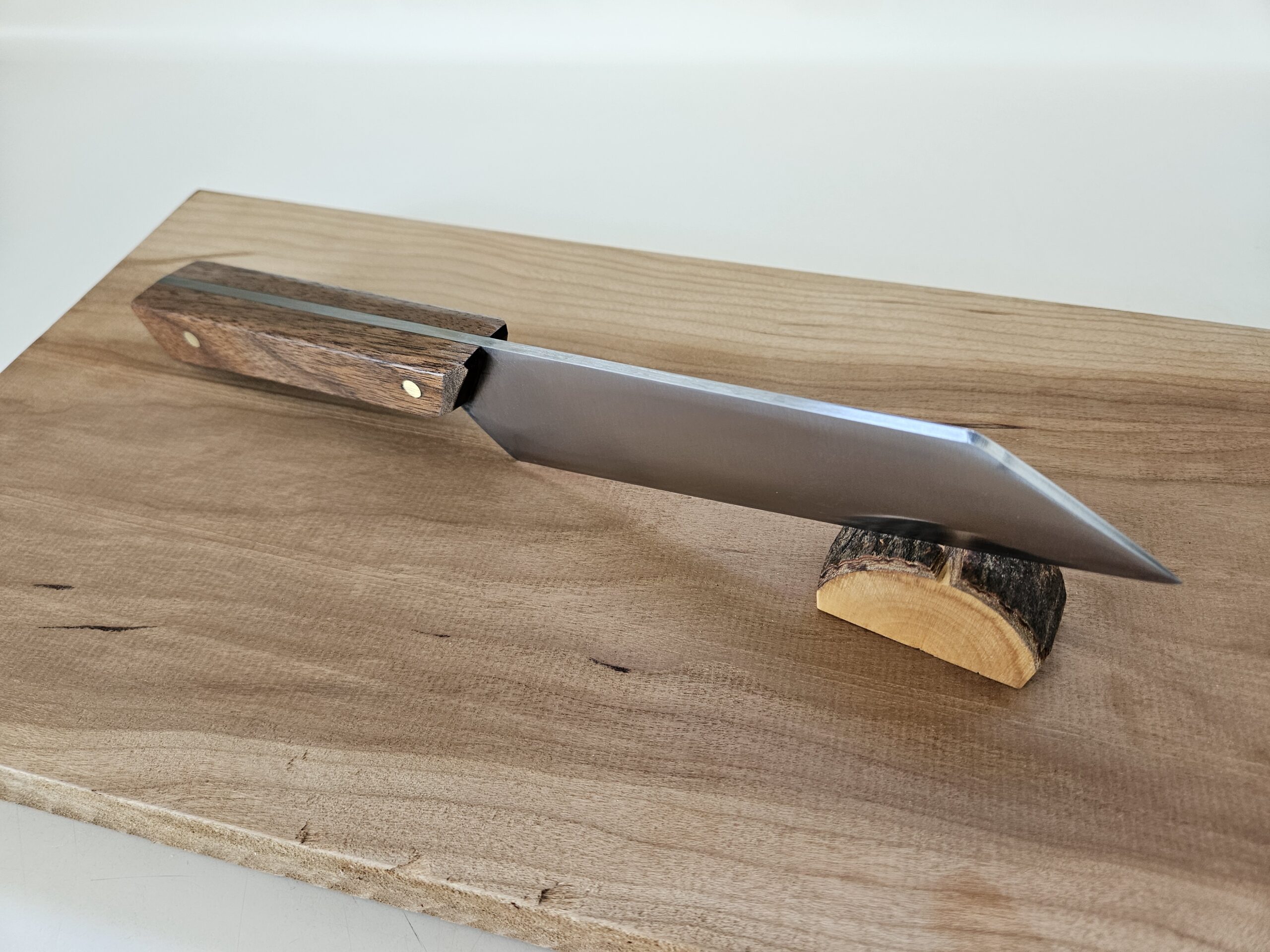 BBQ or Chef’s knife made with 1095 high carbon steel with a 4.5″ long walnut handle.