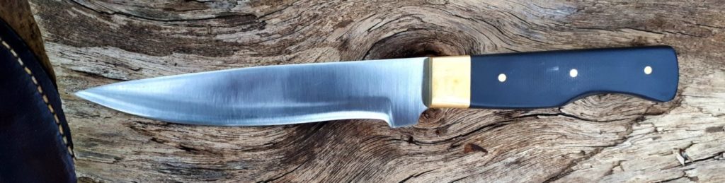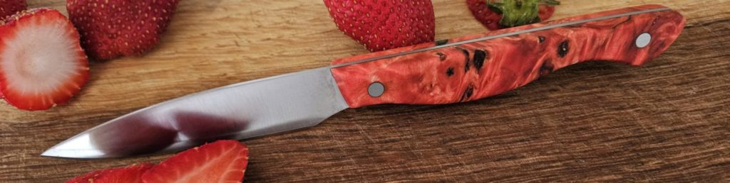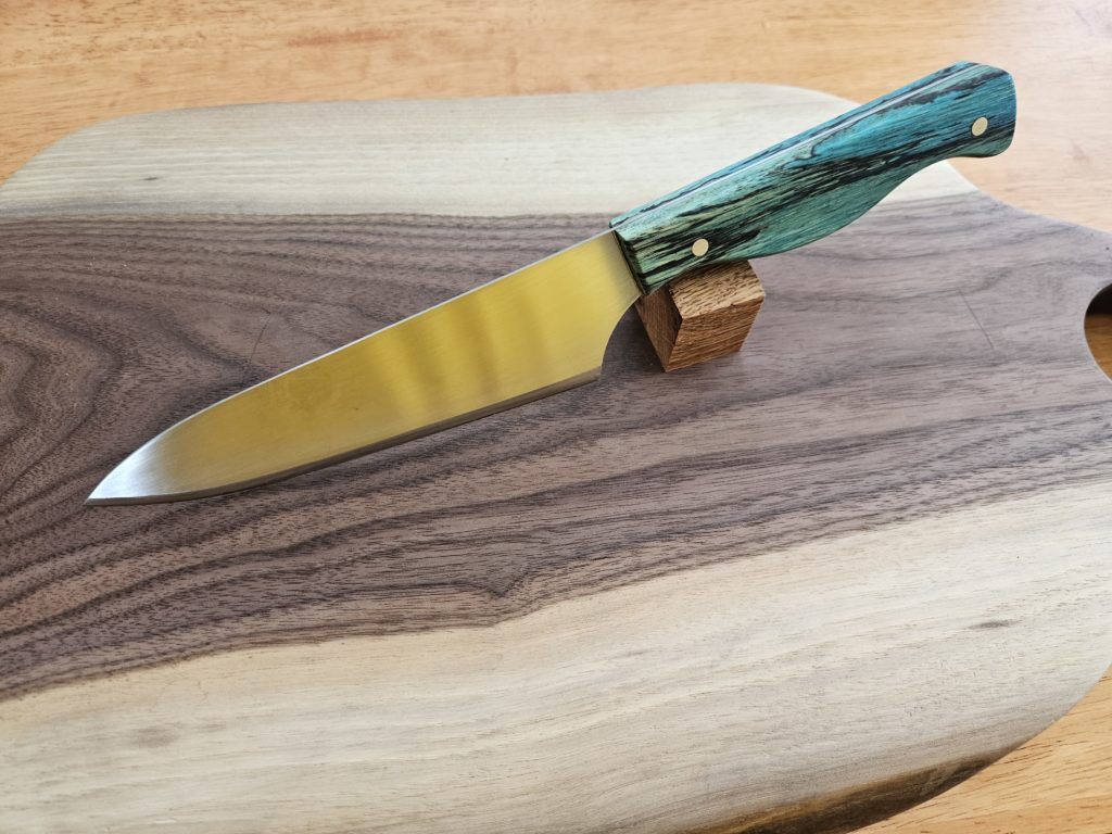 All our custom knives are handcrafted in Ontario, using only top quality Canadian and American steel, and locally sourced hardwood for handles. The blade steel is 440c, a high-carbon stainless “tool” steel ideal for the kitchen as well as camping outdoors. The high-carbon makes it a tough edge-holding blade, with the stain resistant qualities you want for a knife.