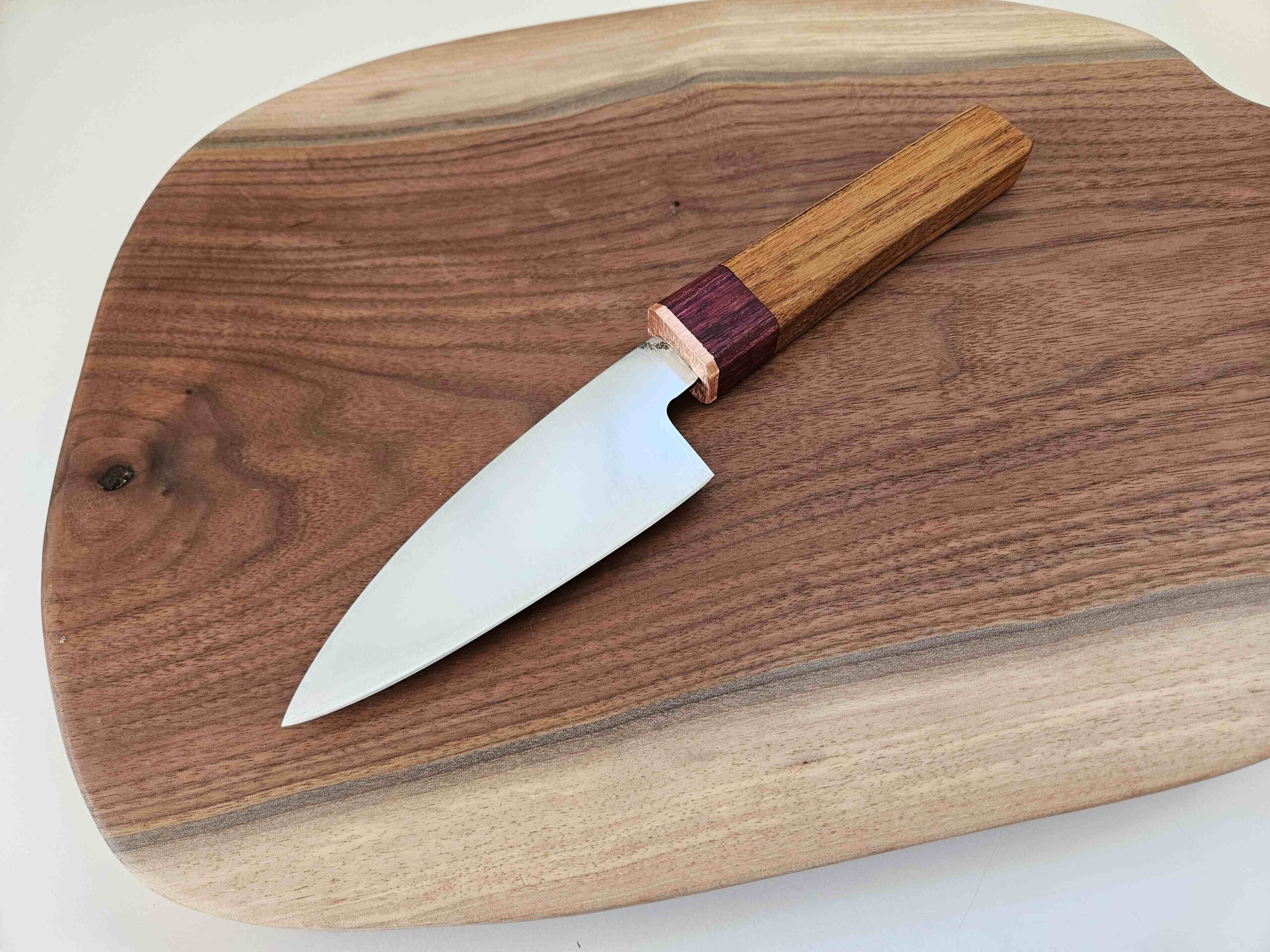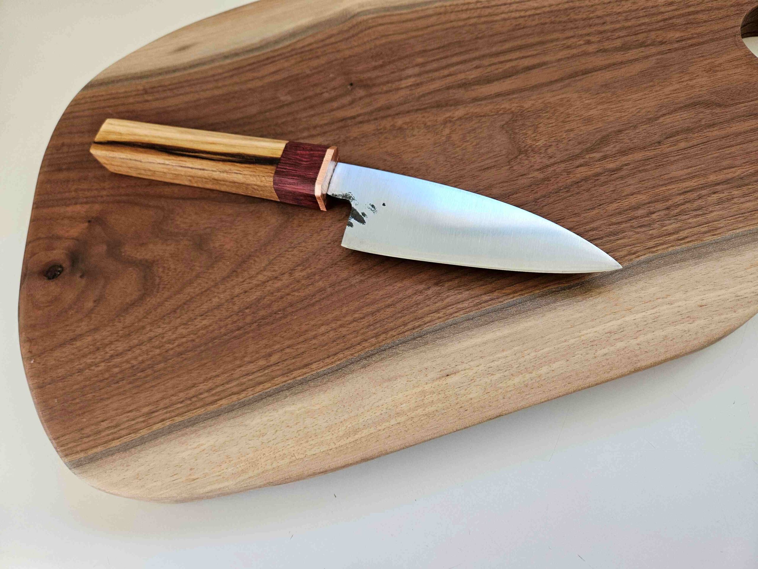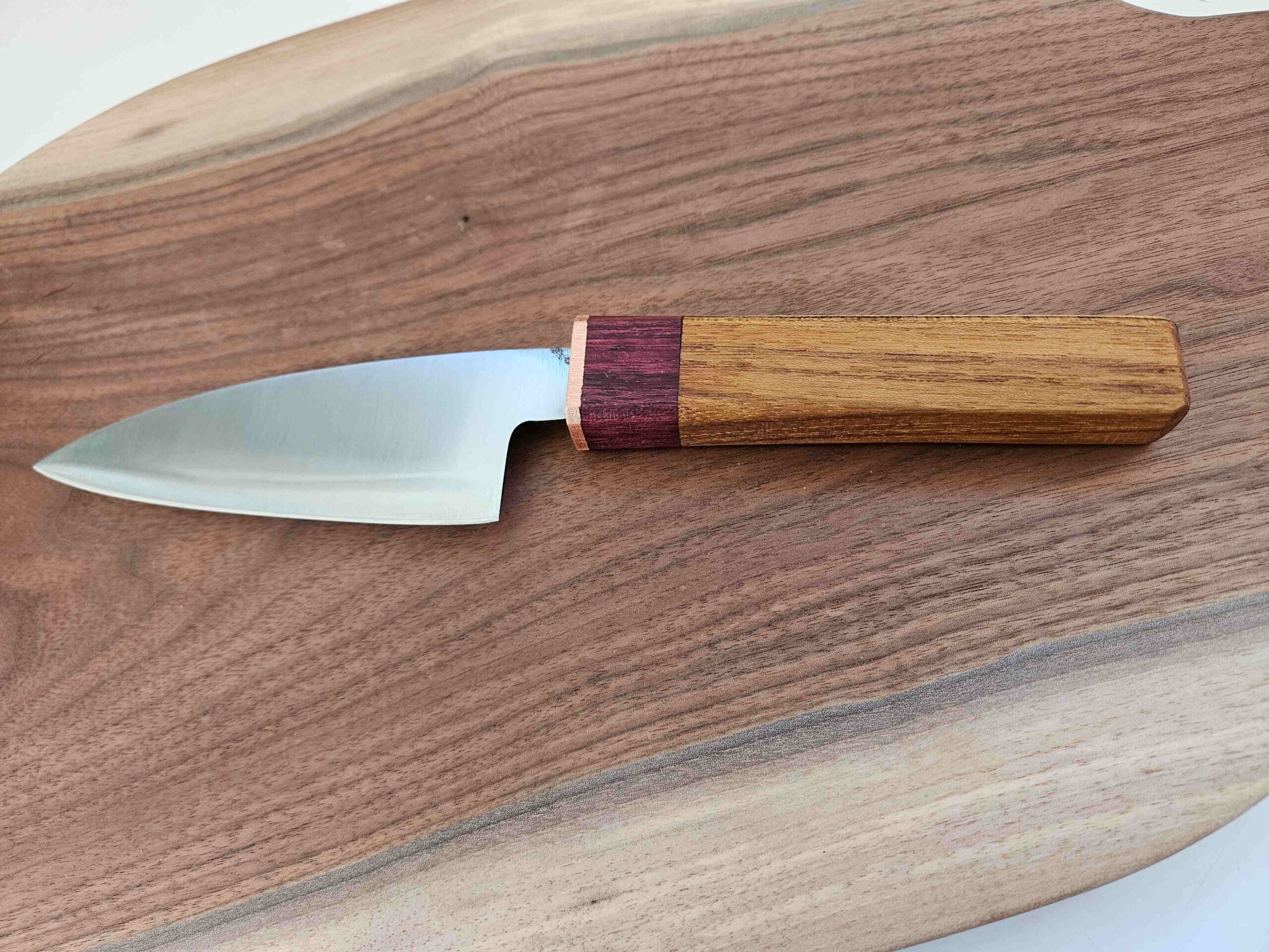 The blade is 1.75″ wide. The bolster is copper and rosewood.
